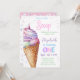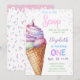 Cuidada y colorida, una primicia de divertida invitación a la fiesta de cumpleaños para el chica. Esto es vibrante con púrpura y rosa con helado número 1 con muchas rociadas.