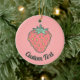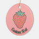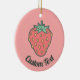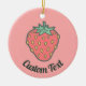 Ilustracion de una fresa. Color de fondo personalizado. Texto personalizado en ambos lados.