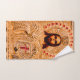 Jesucristo en el metal del oro adornado con las piedras rojas. Sostener un libro con la Cruz Roja. Ciérrese encima de fotografía.