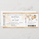 Invitación al avión de oro de la tarjeta de embarque de la boda de destino con icono de corazón y avión
