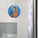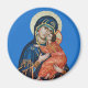 Imán redondo con un ícono de los Theotokos.
