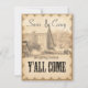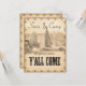 Hay un toque de hospitalidad sureña en este gran diseño de boda con temática de campo que tiene un gran "Y'all Come" y cuenta con una fotografía de color sepia de un granero y equipos agrícolas en el fondo. Personalizar que utiliza la plantilla fácil para introducir sus propios nombres, fecha y detalles en la parte posterior. Busque ID651 para ver todos los productos coincidentes de este conjunto de diseño boda.