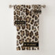 Con este kit de toallas de baño de leopardo de las modas, aporta un toque de lujo a su cuarto de baño. El diseño presenta un patrón de leopardo de las nieves blanco acentuado con una elegante etiqueta en negro y oro que se puede personalizar con el nombre de su familia o el monograma. Elegante y práctico, añade un lado salvaje glamoroso a tu decoración casera, haciendo que las rutinas cotidianas se sientan un poco más indulgentes. Perfecto como regalo o para darle a su propio baño una actualización de diseño. Busque ID1160 para ver otros productos con este diseño y opciones de impresión animal adicionales.