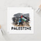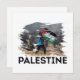 El diseño "palestino" combina una imagen real que expresa la lucha palestina con un poderoso impacto visual en un estilo desgarrado que refleja resiliencia y resistencia. El diseño es un mensaje visual que encarna la fuerza.