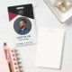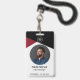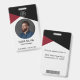 Esta insignia es una forma moderna y profesional de identificar a los empleados en el lugar de trabajo. Está diseñado con una paleta de color negro, rojo y gris y cuenta con un número de identificación único y una foto para una fácil identificación.