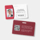 Mínimo y moderno distintivo de identificación con foto de empleado de empresa/empresa con un diseño rojo sobre un fondo blanco. Personalizar con el logo de su empresa y la foto de su empleado. Cambie el color o deje tal como está, y agregue su URL para el código QR y edite la información adicional en la parte posterior si es necesario. Por favor, busque otras opciones de distintivo de empleado/empresa en la colección de distintivos de logotipo de Personalizado fotográfico de Id. de empleado.