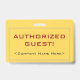 Este sencillo diseño de insignias incluye el mensaje "¡INVITADO AUTORIZADO!", y un nombre de empresa de personalizable u otro mensaje personalizado. También cuenta con un borde de doble línea. Una insignia como esta podría ser usada para identificar que alguien en un lugar de trabajo o un negocio es un invitado/visitante autorizado. [~Z0000307]