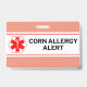 Identificación Tarjeta de Alerta de Alergia al Maíz de Emergencia