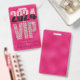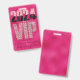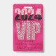 Este elegante distintivo personalizado cuenta con un glamoroso diseño de pases VIP para todo acceso. El fondo es un diseño de Relieve metalizado rosado. El VIP está impreso en un patrón de diamantes con el nuevo año 2024 impreso en un lujoso patrón de purpurina negro y rosa. El confeti purpurina se imprime en las partes superior e inferior.