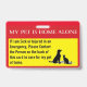 Identificación Tarjeta de emergencia para el hogar del Mascota so