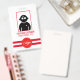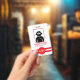 tarjeta vertical roja de identificación de un empleado con código QR