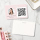 Profesional elegante y moderna tarjeta de presentación minimalista con foto rosa rubor y código QR dorado rosa - Insignia de nombre para chicas que permite incluir foto de rostro o imagen, nombre, título de trabajo e información de contacto.