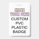 Personalizado imprimió una plantilla de 2,13" x 3,38" RETRAIT BADGE Blank. Diseñar, crear, hacer el tuyo propio. Su foto, imagen, texto, logotipo, gráficos en color completo de borde a borde impresos en la parte delantera y trasera, horizontal o vertical. Hecho de plástico de PVC, duradero, no se desvanecerá ni se rasgará. Clip retráctil, Metalizado, collar de cañón, o solo insignia. Mejor para uso de identidad de oficina y de negocios, exposiciones, exposiciones, conferencias y eventos corporativos.