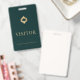 Mantenga un registro de los visitantes y asegure el retorno de sus insignias con esta simple y elegante tarjeta de visitante que presenta un rico fondo verde, tipografía dorada y un logotipo de diamante dorado prediseñado que se puede personalizar con su logotipo. El diseño simple es profesional y perfecto para cualquier negocio o evento.