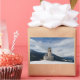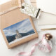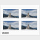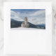 Pegatina fotográfico rectangular de la iglesia católica romana de San Jakob (San Giacomo) en Villnöss en el valle de Villnösstal o Val di Funes en los Dolomitas, Italia en la nieve en invierno.