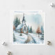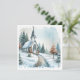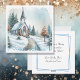 Tarjeta de Navidad de iglesia vintage en acuarela con hermosa cruz en un día invernal nevado con árboles cubiertos de nieve. Todo el texto en la parte posterior de la tarjeta se puede personalizar.