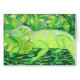 Esta llamativa iguana rayada verde está sentada en una rama de árbol muy detallada sobre el fondo de numerosas hojas verdes de la jungla en esta intrigante imagen verde monocromática.