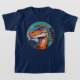 Añade un poco de ruido a tu armario con esta vibrante camiseta que presenta un diseño de dinosaurios audaz y colorido con un ambiente de historieta vintage. Esta camiseta prehistórica de estilo personalizado atrae la atención al instante y es perfecta para los niños o para los amantes de la historia natural.