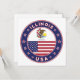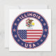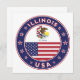 Marca de Illinois con bandera de Illinois y bandera de los colores de EEUU, forma redondeada. Emblema de Illinois. Sello de Illinois. Colección de Estados Unidos.