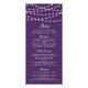 Sencillo pero elegante, las luces de cuerda de la colección de bodas púrpura son un diseño impresionante con bonitas luces blancas de cuerda colgadas en un fondo morado, perfecto para cualquier celebración boda moderna. Estas tarjetas de menú pueden ser personalizadas para su ocasión especial y harían el menú perfecto para su boda, ducha de novia, fiesta de compromiso, fiesta de cumpleaños y muchas otras ocasiones especiales. Agregue la redacción de su personalizado a este diseño utilizando los cuadros "Editar esta plantilla de diseño" situados en la parte derecha del elemento, o haga clic en el botón azul "Personalizar" para organizar el texto, cambiar los tipos de letra y los colores y añadir información o imágenes adicionales a este diseño.