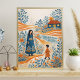 Esta encantadora ilustración de estilo folk captura un momento de paz entre una madre y un niño que caminan por un camino sinuoso a través de un paisaje campestre en flor. Rodeada de delicadas flores, suaves colinas onduladas y una acogedora cabaña que brilla en la distancia, la obra de arte evoca calidez, amor y la tranquila belleza de los momentos familiares sencillos.