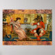 Cuento de hadas clásico de La Bella y la Bestia - Esta imagen colorida está basada en una antigua ilustración de un libro de La Bella y la Bestia de Walter Crane, publicada en 1874. La belleza y la bestia se enfrentan en la elegante mesa del comedor.