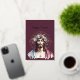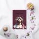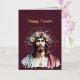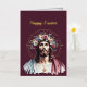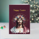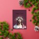 La imagen representa a Jesucristo con una expresión serena y edificante, adornada con una corona de flores coloridas que simbolizan la paz, el amor y la renovación. Detrás de Él hay un halo dorado radiante con detalles geométricos intrincados que representan divinidad y gloria. Usa una bata con suaves tonos de acuarela, incluyendo blanco, azul y rojo, que pueden simbolizar pureza, divinidad y sacrificio. En Su pecho está la representación de un estallido eucarístico, enfatizando Su rol en la teología cristiana como fuente de alimentación espiritual y luz.