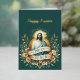 La imagen representa una obra de arte religiosa bellamente diseñada con una figura central de Jesucristo, rodeada de luz radiante y arreglos florales. El texto "CRISTO ES RISEN" se muestra de forma destacada en un cartel que simboliza la celebración de Pascua y la resurrección. Los elementos que lo rodean son flores, trigo y hojas, todas ellas decoradas en un estilo suave y acuarela. Exuda una sensación de esperanza, renovación y reverencia, comúnmente asociada con Pascua.