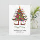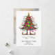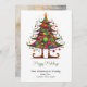 Deslumbrante ilustracion de árbol de Navidad en una tarjeta de vacaciones plana. El dorso de la carta es un diseño abstracto de copos de nieve de bonito. Se puede cambiar el texto. Gráfico asistido por IA adquirido con uso comercial. Pintura: RedHeronLighthouse y RavenPrintableDesign