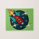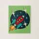 Rompecabezas de rompecabezas de ilustracion gráfico del barco del cohete retro. El color de fondo se puede personalizar.