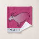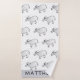 Ilustracion original de historietas personalizados de un búfalo de agua (medio transparente sobre fondo transparente para los colores de su elección). Diseño de toallas de baño de 3 con azul blanco y morado oscuro + nombre a personalizar en un rectángulo gris. Puede cambiar fácilmente el texto (fuente, color, tamaño y posición), el color de fondo y la posición + tamaño del diseño haciendo clic en el botón personalizar.