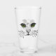 Este vaso para bebidas tiene un ilustracion negro de la cara de un gato con bigotes largos y ojos verdes vibrantes en el frente y la espalda.