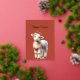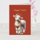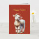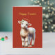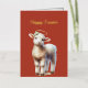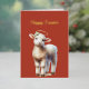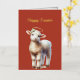 La imagen muestra un cordero blanco adorable con un abrigo suave y esponjoso, de pie con gracia. El cordero tiene una expresión suave y serena con ojos brillantes y orejas marcadas. Un halo dorado flota sobre su cabeza, simbolizando pureza y divinidad. Una pequeña disposición floral, con flores blancas y hojas verdes, adorna un lado de la cabeza, realzando el ambiente sagrado y tranquilo.