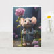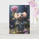 Ratón pequeño adorable con flores rosas. Alegrar el día de alguien con esta tarjeta de felicitación en blanco para cumpleaños, aniversario, nuevo bebé, gracias, pésame, etc.