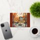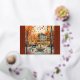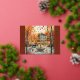 Esta imagen retrata una animada plaza del pueblo ambientada en otoño, llena de actividad. Una fuente central delimita la escena, rodeada de senderos adoquinados, hojas de otoño dispersas y edificios de estilo europeo clásico con luces cálidas que brillan por las ventanas. La gente se pasea por ahí, participa en una conversación o disfruta del clima fresco. Un carruaje tirado por caballos da un toque nostálgico, mientras que los árboles, adornados con naranjas vibrantes y hojas amarillas, enmarcan la escena con gusto. El ambiente es acogedor y encantador, evocando una sensación de comunidad y calidez de temporada.