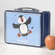Este diseño presenta un bonito y feliz ataúd sobre un fondo azul con un adorable estilo ilustracion personalizado. ¡Mucha diversión!