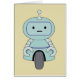 Robot lindo y amigable. Este adorable robotito tiene una antena en la parte superior de la cabeza y una rueda útil en la parte inferior para moverse. Sus brazos tienen pequeñas pinzas para agarrar cosas y tiene una cara inexpresiva típicamente robótica. Tiene un toque retro.
