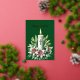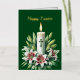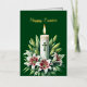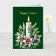 Esta imagen cuenta con una vela bien iluminada, adornada con una delicada cruz verde, rodeada de un frondoso arreglo de lirios y follaje. La cera suave gotea de la vela, simbolizando calidez, devoción y luz espiritual. Los lirios, a menudo asociados con la pureza, la resurrección y los nuevos comienzos, realzan la esencia sagrada y pacífica de la composición.