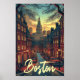 Ilustracion de viaje de arte de la época del paracaídas de Boston