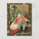 Ilustracion del vintage de dos niños felices debajo de un árbol de navidad. Las tarjetas de Navidad maravillosas dan una sensación de la diversión pasada de moda del día de fiesta. Disponible en dos tamaños de tarjetas, de postales y de pegatinas para los sobres o las letras y los paquetes de aislamiento del adornamiento. Compra una o ciento. Completamente adaptable, añada su propio saludo, personalizan al contenido de su corazón.