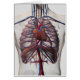 Ilustracion médico del pecho masculino con arterias, venas, corazón y jaula de costillas.