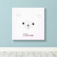 Con una ilustración de cordero (oveja) linda y moderna con un guión para el nombre. Personaliza esta impresión de lienzo de arte de guardería de ovejas.