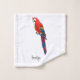 Este diseño presenta un alegre loro rojo escarlata escarlata con un estilo de ilustracion personalizado.