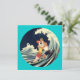 Ilustración vintage de amantes surfistas besándose a lo largo de las olas. Puedes personalizar esta invitación a cualquier color de fondo para que coincida con tu tema de color