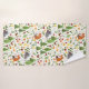Ilustraciones naturales de estilo de arte folclórico escandinavo (bosque; zorro, hojas, árboles, flores, montañas y pájaros) en un diseño de patrón de superficie sobre un fondo de color crema claro.