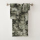 Imagen abstracta mantenida que sufrió un efecto 'esculpido' y 'mosaico' que causó una débil ilusión de relieve y profundidad que se acentuó por un cambio de colores y contraste, y también contiene pequeños arañazos o lloviznas en tonos grises y grises burdeos que pueden forzar la percepción de profundidad.