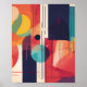 Un conjunto de formas con ricos colores de ciruela, amarillo, rojo y otros, se unen para hacer de esta pieza una asombrosa adición a sus paredes que evoca calidez y energía. (Esta pieza fue creada con elementos de IA)