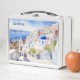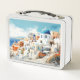 Bonita lonchera con dos cuadros diferentes: Oia, Santorini, Grecia. Atardecer en el lugar más hermoso de Grecia.