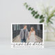 Envíe nuestra foto paisajística para guardar las postales de fecha con un borde blanco para que sus invitados sepan que no tienen cita con su boda. Sugerencia: si necesita cambiar la redacción que está en el tipo de letra del guión, puede ir a la sección "Personalizar esta plantilla" y, a continuación, hacer clic en el botón "Hacer clic en el Personalizar para más adelante" situado en la parte inferior. Puede borrar cualquiera de las imágenes de texto que necesite y añadir su propio texto en su lugar con el botón "Añadir texto". No olvide consultar nuestra gran selección de fotos, guarde las tarjetas de fecha, postales e imanes navegando por nuestra colección de imágenes Guardar la fecha!