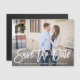 Envíe nuestra imagen paisajística para guardar los imanes de fecha con un guión moderno para que sus invitados sepan que no pueden usar su fecha de boda. Sugerencia: si necesita cambiar la redacción que está en el tipo de letra del guión, puede ir a la sección "Personalizar esta plantilla" y, a continuación, hacer clic en el botón "Hacer clic en el Personalizar para más adelante" situado en la parte inferior. Puede borrar cualquiera de las imágenes de texto que necesite y añadir su propio texto en su lugar con el botón "Añadir texto". No olvide consultar nuestra gran selección de fotos, guarde las tarjetas de fecha, postales e imanes navegando por nuestra colección de imágenes Guardar la fecha!